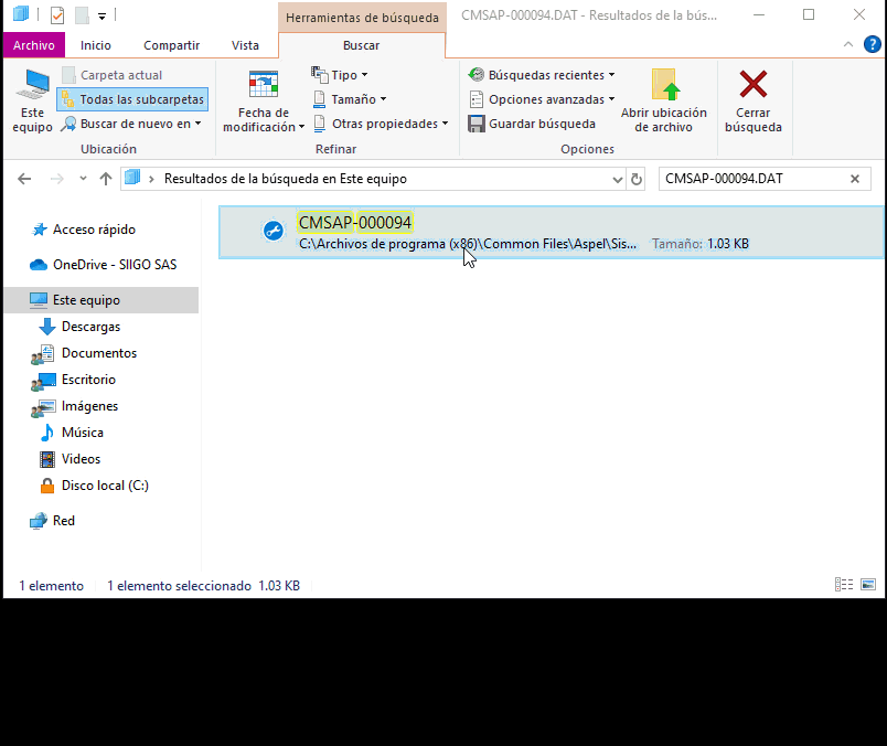 - Puedes encontrar la ruta del DAC en el archivo con extensión *.dat; para ello, ingresa a: C:\Program Files (x86)\Common Files\Aspel\Sistemas Aspel